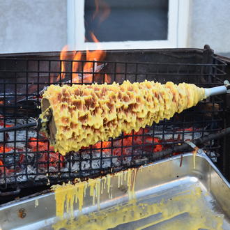 A Ancizan, direction Histoire de gâteaux et laissez-vous conter l’histoire du gâteau à la broche. Ce gâteau ancestral de montagne se confectionne en suivant une procédure stricte. La pâte, à base d’œufs, de farine et de beurre, est versée sur un cône posé devant un feu de bois. Après plusieurs heures de cuisson en tournant lentement la broche, en ressort un délicieux gâteau entouré de pics, tel un sapin de Noël doré. Découvrez ce processus dans une visite gratuite puis dégustez le “rocher des Pyrénées” après un passage à la boutique !