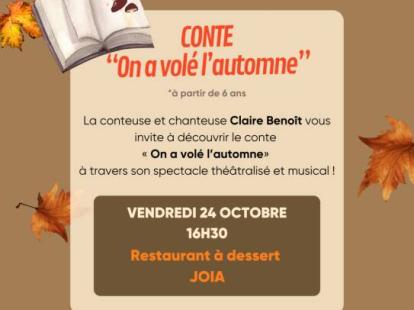 La conteuse et chanteuse Claire Benoît vous invite à découvrir le conte « On a volé l’automne» à travers son spectacle théâtralisé et musical.