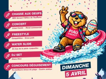 10h00 : Chasse aux oeufs - les gourmands pourront chercher les douceurs chocolatées déposées par le Lapin, les Cloches et les Poules de Pâques!! - offert par la station - rendez-vous devant l'Office de Tourisme.