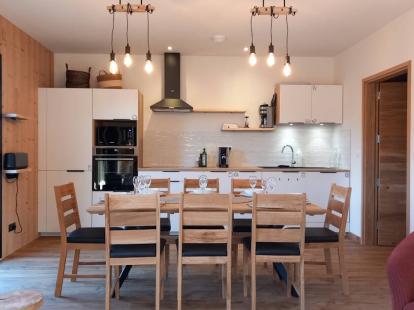 Gîte indépendant tout confort pour 8 pers : Une grande pièce de vie (salon, salle à manger et cuisine complète) et un extérieur privatif. La terrasse fait presque 100 m², pour se relaxer autour d’un barbecue ou dans le bain nordique. À la nuit tombée, profitez de l’espace brasero en contrebas de la terrasse pour vous réchauffer.