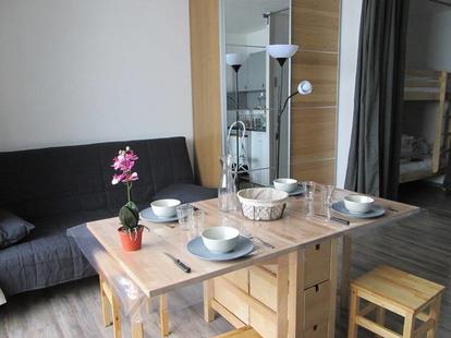 Appartement avec balcon exposé sud. Séjour avec canapé clic-clac - coin cuisine équipé - coin nuit avec 2 lits superposés - salle de bains avec baignoire et WC. Excellent état.